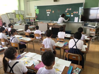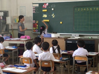 算数科「のこりはいくつ」の学習をしました。えんぴつや金魚などのお話から、ブロックを使って考えたり、それをたし算のように式で表せないかと考え、ひきざんの式での表し方を学びました。