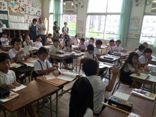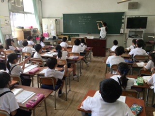 算数科「長さの単位」でものさしを使って長さを測り、線を書くというがくしゆうをしました。目盛りを読み取って点を書き、それを結ぶというのは簡単なようで難しいです。線を引くときは、目盛りの打ってある方と反対側で引くというのは、お家の方も「知らなかったわ」とおっしゃっていました。