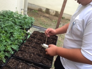 花苗ボランティアさん、十三公園事務所、区役所の方の応援を受けて、ひまわりの種を蒔きました。200粒の種からたくさんのひまわりが咲くとうれしいです。
