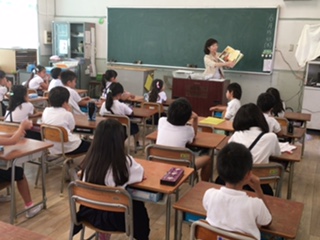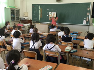 小さい声で絵本を読んでくださっています。でも集中して聞いているので、後ろまでよく聞こえています。