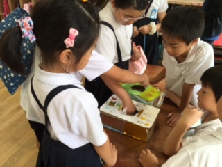 わりばしてっぽうでの射的、くじ引き、????クイズなど、子どもたちのアイディア盛りだくさんです。
