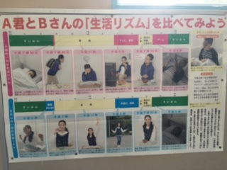保健室前に掲示してあります。早寝、早起き、朝ごはん、朝うんち、あなたはどうですか?