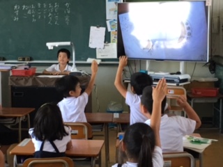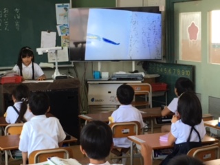 国語科で学習した説明文の書き方を真似して、動物のひみつを調べ、クイズ大会をしました。「これは何のくちばしでしょう?」などと呼びかけ、ひみつをクイズにして発表しました。