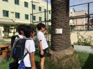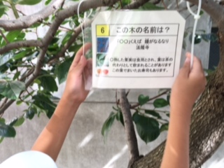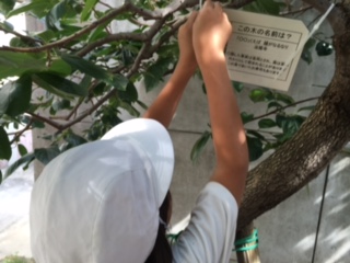 前回の活動時にの続きで、構内にある樹木にネームプレートをつけました。たくさんの木が西三国小学校にはあります。豆知識も書いてあるので、見てくださいね!