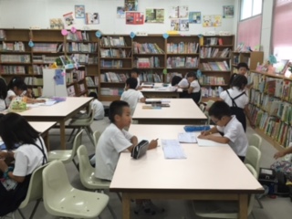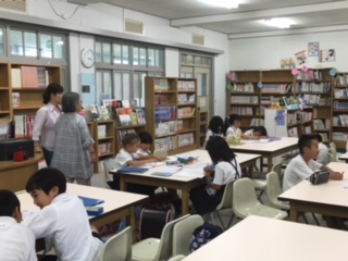 低学年の子どもたちが、宿題や自由勉強、読書などに取り組んでいます。低学年は、自由勉強のノートを「がんばるくんノート」と名付けて1年生の時からずっと続けています。
