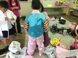 その後、27日の北大阪民族交流会で着るパヂチョゴリやチマチョゴリのサイズ合わせました。8月の26日は、夏休み中の活動を予定しています。楽しみにしていてくださいね。