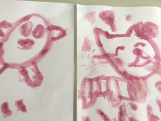 押し花を作ったり、しぼり汁で絵を描いたりしました。アサガオ以外の花でも色水はできるのかな?試してみてね。