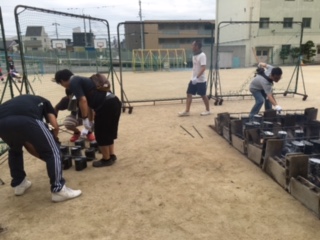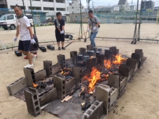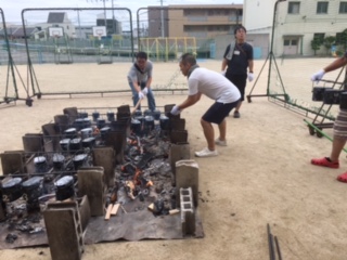 お父さんたちも熱いのを我慢して、飯盒のかまどを準備してくださり、ずっと見てくださいました。