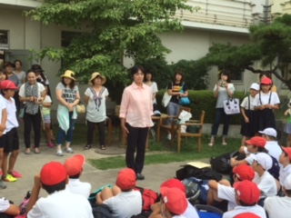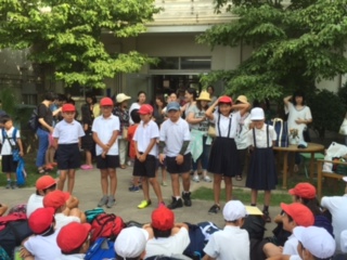 今日から5年生が、2泊3日の林間学習でハチ高原に向かいます。出発式では、代表メンバーがしっかり挨拶しました。