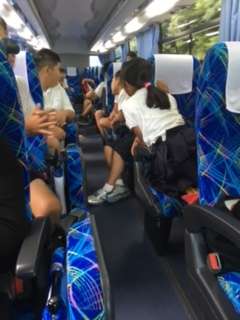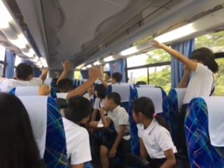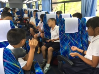 2号車では、バスレクを、しています。替え歌、「これは誰(何)?」クイズ、数字遊びなどで楽しんでいます。