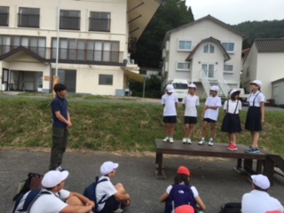 開舎式を行いました。お世話になるNさんから、空の変化の事、虫や草木の事などをおしえていただきました。気をつけて楽しい2泊3日になるようにとの話がありました。