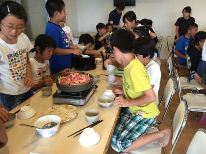 楽しみにしていた食事タイムです。すき焼きをみんなで美味しくいただきました!