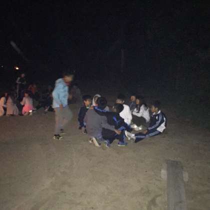 キャンプファイヤーを囲んで、「アブラハムの7人の子」「ぴよぴよちゃん」「鬼のパンツ」「猛獣狩り」などのゲームや歌を楽しみました。
