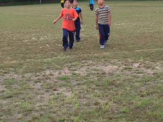 片付けなども手早く協力して出来たので、時間が出来、近くのグラウンドへ遊びに。リレーをしたり、虫、かえる取りなどをし足りして遊びました。