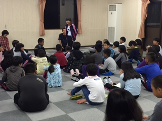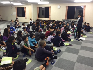 一日の振り返りです。楽しかったこと、協力できたこと等たくさんの良い思い出が出来たことを発表しました。