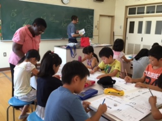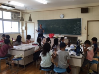 10時から、低学年のサマーイングリッシュスクール第2回目がありました。ネーティブの先生の発音を真似て、積極的に声を出しています。今日は、お家の方も参観をされていました。