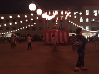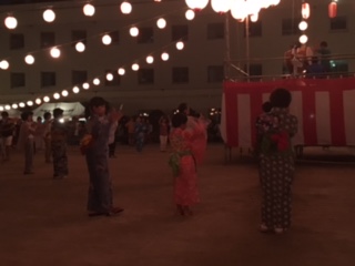 卒業生が太鼓を打っています。子どもの踊り手が少ないのが残念です。