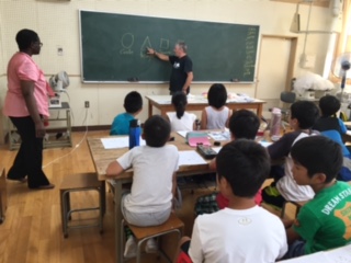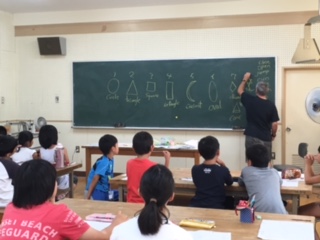 昼からは、高学年の子どもたちが学んでいます。三角形や四角形、楕円形などの名前を教えてもらいました。