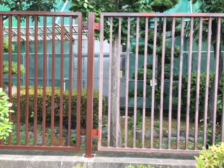 管理作業員さんが、北側のフェンスのペンキを塗ってくれています。池側の方は終わり、給食室側は、半分終わっています。比べるとよくわかりますね。暑い中、頑張っています!