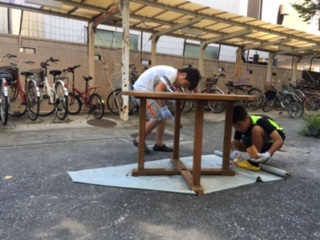 雨風にさらされて、少しペンキが剥げてきていました。6年生のボランティアさんが、ニスを塗ってくれました。ありがとう!!