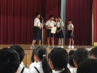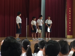 昨日から2学期がスタートしました。始業式で、夏休みにレスリングと陸上で頑張ったA君、Sさん姉妹の表彰状を渡しました。素晴らしい成績の陰には、毎日の練習があります。子ども達一人一人が、何か1つ頑張る事を見つけ、それに向かって努力し、一人一人が自分の金メダルを目指して欲しいと思います。おめでとう!