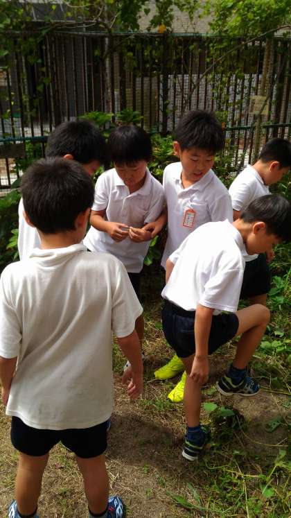 3年生が学習園で昆虫探しをしました。