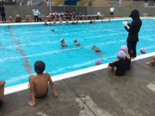 蹴伸びでどのくらい進めるかな?記録をとりました。夏休みの間にとても上手になっています。