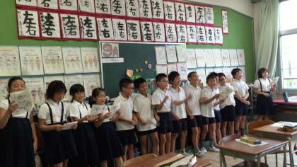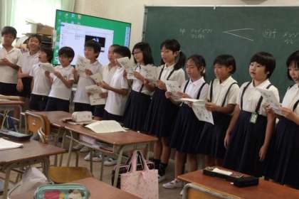 運動会で歌う歌を練習しました。元気いっぱいの歌声が教室に響きました。