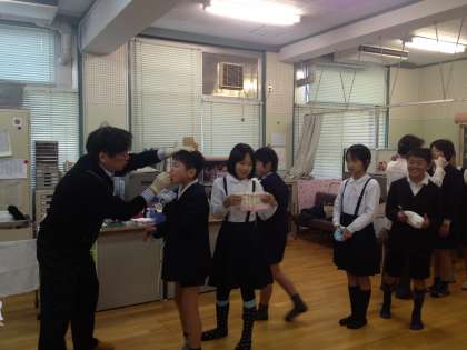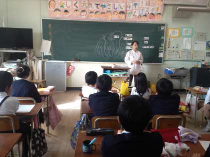 12月5日(木)5時間目、校医の大塚先生、サンスターから歯科衛生士さんが来てくださり、歯の磨き方やお菓子の食べ方を教えていただきました。その後、フッ化物を塗布してもらいました。