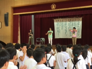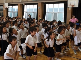 10月27日に文化庁の事業でオペラ「森は生きている」を本校で公演していただきます。今日は本番で一緒に歌ったり踊ったりする曲の練習を行いました。こんにゃく座のお姉さんたちの元気で素敵な歌声に、特に低学年の子ども達はノリノリで歌って踊りました。