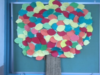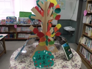 図書室の読書の木の葉っぱがいっぱいになったので、M先生が廊下に掲示してくださいました。みんなのおすすめの本、手にとってみてはどうでしょう?