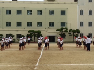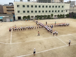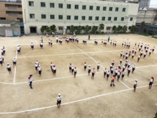 金曜日は、運動場に出て自分の場所の確認、隊形移動などを行いました。大体の位置の確認だけだったので、これからどんな風に仕上がるか楽しみです。