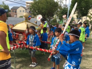 17日 区民センターで淀川区民祭りがありました。西三国子ども会もみこしを担いでパレードに参加しました。