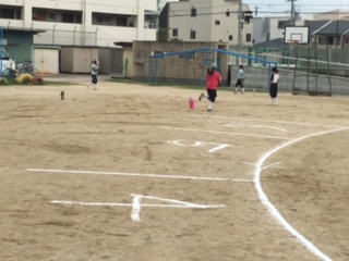 今日も子ども会のキックベースボールチームが、練習をしています。