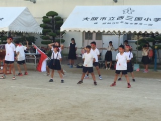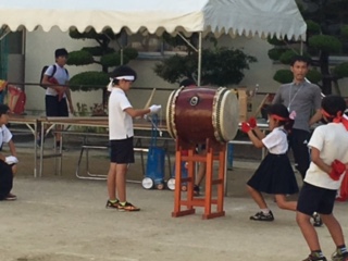 放課後、みんなが揃うまで、4年生が代わりに太鼓など役割をかってでてくれています。大きな声が出ています。