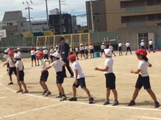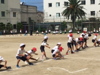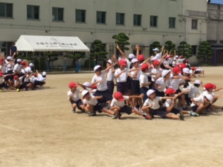 太鼓で入場して力強く踊ります。雨が心配です。今日が最後の練習のつもりで頑張りました。