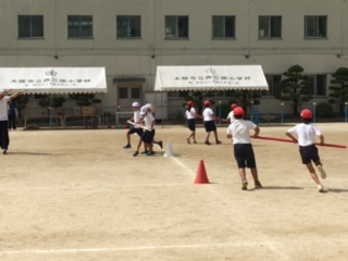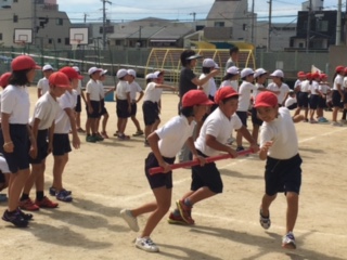チームの気持ちを一つにして、はしったり、回ったり、跳んだりします。暑かったけど一生懸命走りました!