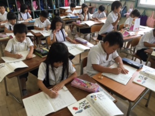 「かぞえうた」でいろいろな数え方があることを勉強しています。一つ、二つ・・の数え方で、運動会の「玉入れ」の数も数えます。