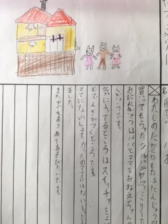 「宝物を紹介しよう」の学習をしています。自分の宝物について、どこがどんなふうに気に入っているのか、思い出は何かなどについて、「はじめ」「なか」「おわり」の構成でプリントにまとめ、友だちにわかりやすく伝えるという学習をしています。