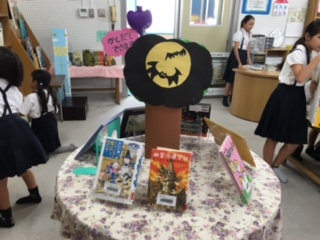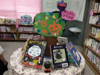 ハロウィンにちなんだ図書を並べてあります。