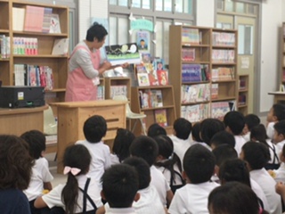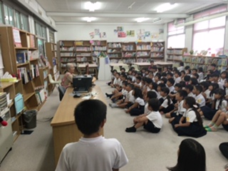昼休みのお話会です。とっても静かにしっかり聞いて、質問や感想もたくさん出ました。