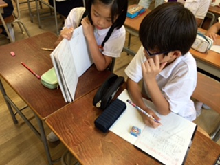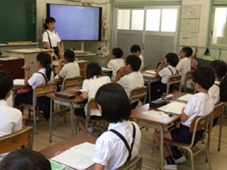 教育実習生の研究授業です。子どもが喜ぶような教材作りや、ictを使っての発表など、子どもたちは楽しみながら学習を進めました。
