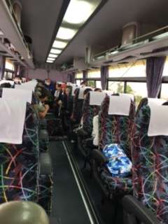 土山サービスエリアでトイレ休憩をし、出発しました。バフの中では、くいずをしたり、歌を歌ったりして、みんな元気です。