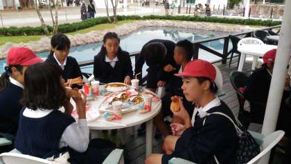 無事にスペイン村に到着しました。昼食は活動班で食べます。