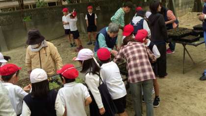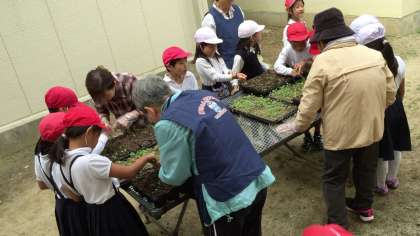 ボランティア、公園事務所の方と一緒に作業しました。ポットでもう少し大きくなったら、次は12月ごろ植木鉢に植え替えします。