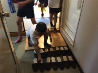 部屋でくつろいでいます。スリッパもきちんと揃えておくと、出るときに助かりますね。