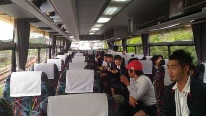 バスの中で音楽を聞きながらのカラオケが始まりました。
