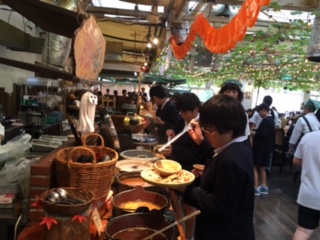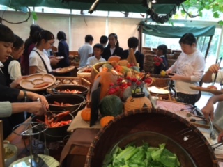 バイキングです。自家製のソーセージ、野菜を味わって!