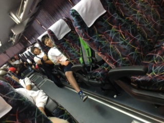 2組のバスでもDVDを観ています。爆睡している子もいます!