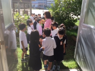 学校の中の「秋」を探しました。中庭のりんご、柿、アメリカンハナミズキの赤い実などを見つけました。これから秋が深まっていくにつれて、また違ったものが目に止まるかもしれませんね。お家でも散歩の時など、ちょっと意識してみてくださいね。